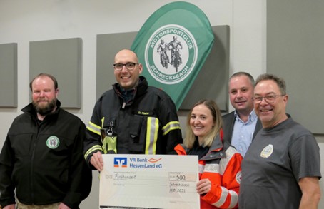 Der Motorsportclub Schrecksbach hat seit seinem Bestehen immer wieder große Veranstaltungen durchgeführt, die ohne die Unterstützung aus der Schrecksbacher Bevölkerung nicht möglich gewesen wären. Insbesondere war das Rote Kreuz Schrecksbach und die FFW Schrecksbach im Einsatz. In einer kleinen Feierstunde dankte der Sprecher des MCS, Christian Keil den beiden Organisationen. Beiden wurde eine Spende von 500 € überreicht, die für die Förderung der Nachwuchs- und Jugendarbeit verwendet werden sollen. Keil gab der Hoffnung Ausdruck, dass die gute Zusammenarbeit und Unterstützung auch weiterhin so gut funktioniert. Bürgermeister Schultheis lobte die gegenseitige Unterstützung der örtlichen Vereine und sagte, dass diese Aushängeschilder feste Bestandteile des Schrecksbacher Vereinslebens seien.
